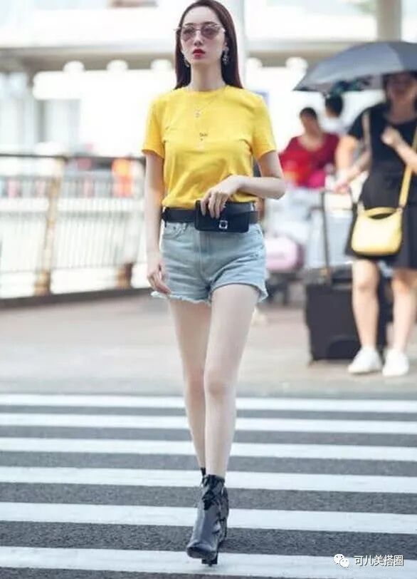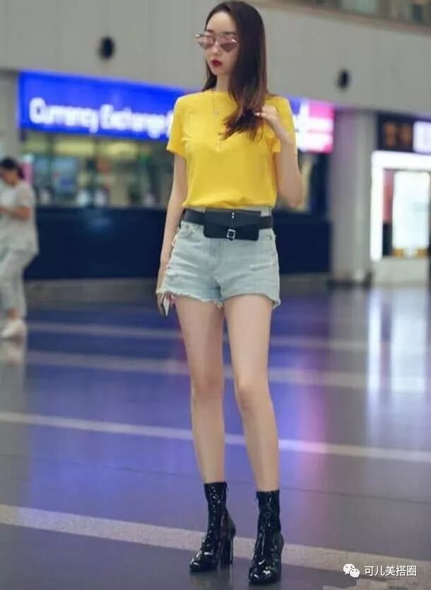 再来看下蒋梦婕现身机场,只见蒋梦婕蒋梦婕穿着一身黄色的T恤搭配热裤,这样的服装穿在蒋梦婕穿在蒋梦婕身上还真是非常的显清新感爆棚的一面,脚上穿着黑色的中筒靴搭配上这身服装也是再合适不过了,一双纤细的大长腿也是很完美的呈现在人们的面前。