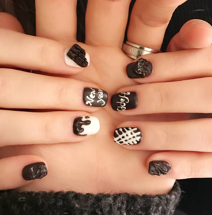 在黑色美甲的基础上,用两三颗小钻来点缀,