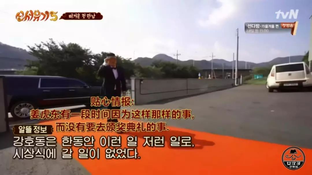 虎东穿的很正式,节目组友情说明最近几年因为各种有的没的原因没参加红毯