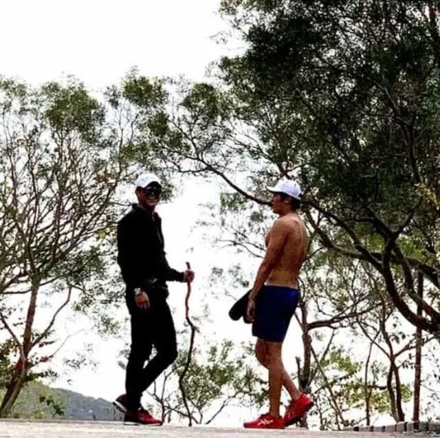 而马德钟不只是会带儿子出席公开场合,日常与儿子共享天伦之乐之后,他或是妻子都会晒出有儿子的合照。日前马德钟趁着儿子返回澳洲完成学业之际,就安排了一家三口去爬山,一同享受家庭之乐。之前就提及过马在骧身材很好,从小很喜欢体育运动,尤其是游泳,但是就很少看到他晒出身材的照片,而罕有的是在这一次全家登山的过程中,马在骧因为天气太热的缘故,而脱去了上衣,故此就展现出了好身材。随后他赤膊玩转双杠,这一幕就被马德钟的太太拍了下来,虽然只是一张背影照,但是他背部的肌肉线条则是一览无遗,可以形容为是一道风景线,还有若隐若现的胸肌尤为吸睛,可谓是青出于蓝而胜于蓝,要比马德钟的身材更好。另外父子俩在变走边交流的这一幕,也被张筱兰给拍摄了下来,这自然的一幕展现出了父子俩的感情极好。
