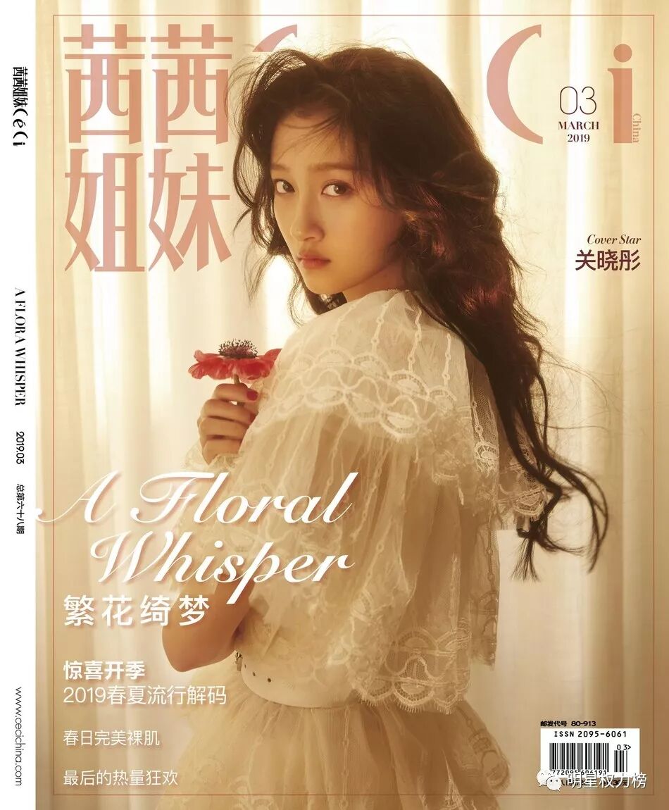 ▼ 关晓彤登杂志3月刊封面,春日大片色彩梦幻。关晓彤挑战泡面头上演眼神杀,或凝望、或思考,唯美似公主。