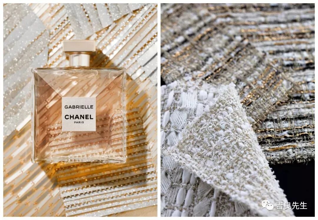 例如瓶身采用的似金若银的织金色调,灵感源于织金面料和金银线斜纹软呢所呈现的精致色调。
