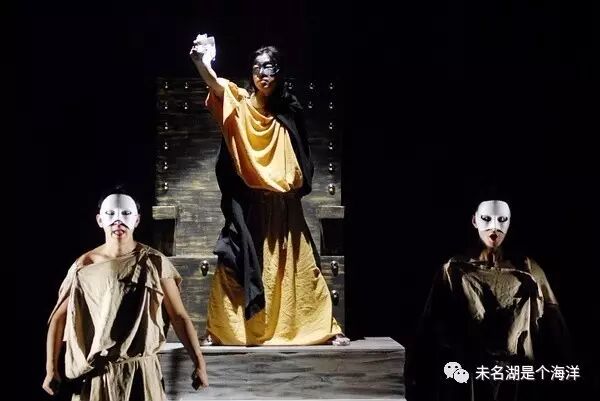 实话说,今年演出的《太阳·弑》,在编导和呈现上,与十年前的那部相比,并没有特别大的突破。创作的主题、思路和表现形式基本都延续了当年的想法:同样运用古希腊歌队的形式,同样的运用面具进行表演,同样的加入“扭秧歌”等中国元素。不同的是这回的演员都是专业的了。但是在很多细节上,我们做了更加成熟的设计。比如,将王座和断头台合二为一,使得权力象征和国家机器在舞台上达成了一种残酷的艺术化转换;强化了舞台行动的仪式感,让整个作品的宗教气质更加强烈;在舞美和灯光的技术层面加强了氛围和气场的营造,使得观众不得不置身于遥远的幻境。