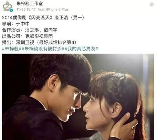 对于被封杀这一消息,朱梓骁工作室证据没有被封杀,一直有作品再拍。