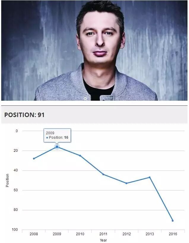 2009年DJ Mag Top 100前20的俄罗斯DJ排名第16位