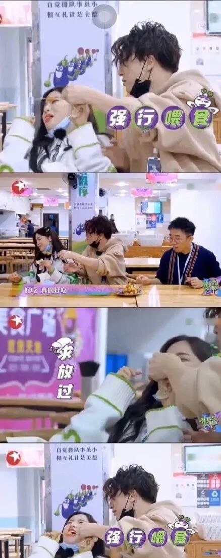 比如在杨超越表示拒绝后,强行喂杨超越吃东西