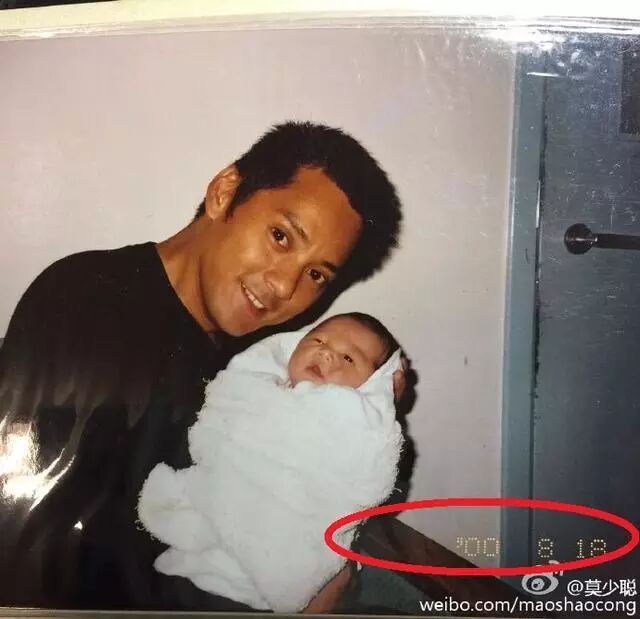 微博中公布的与儿子合影时间是2000年8月18日,刚好在儿子出生后2天拍的。可是,当年报道的新闻不是“莫少聪拒认儿子”吗?!