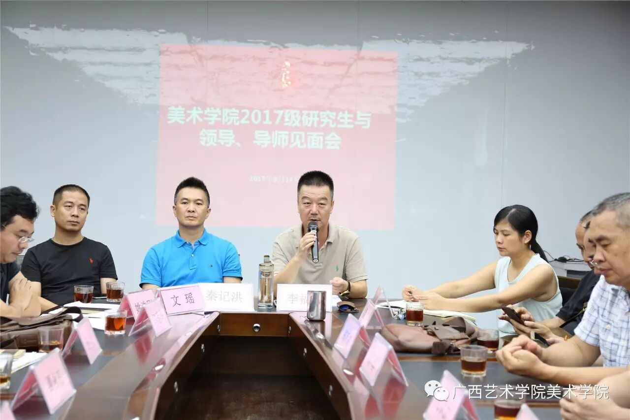 2017年9月15日上午11:00,美术学院在1314会议室举行了2017级研究生新生与导师见面会。美术学院院长李福岩、党委书记秦记洪、副书记石红霞、副院长闫爱华、副院长文瑶,以及全体硕士生导师参加了此次见面会。