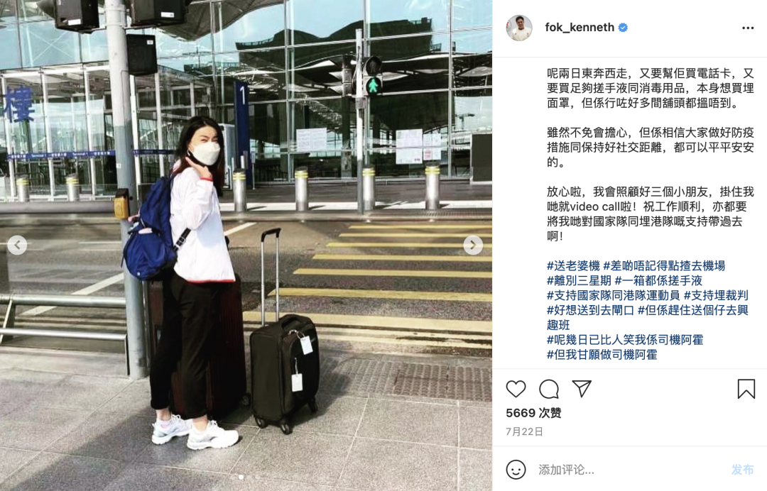 妻子出国工作,他比妻子更加紧张,为妻子东奔西走准备防疫消毒用品,甚至准备了整整一箱洗手液;无法陪同前往东京的他“好想送去闸口”,但无奈还要送孩子去上兴趣班;别人嘲笑他是“司机阿霍”,他说“我甘愿做司机阿霍”。