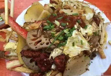 品种很多,什么吃的都可以丢锅里炸,但是菜和肉火候把握到位,不嫩不老。还有佐料特别给力,那就是孜然糊和辣椒糊。