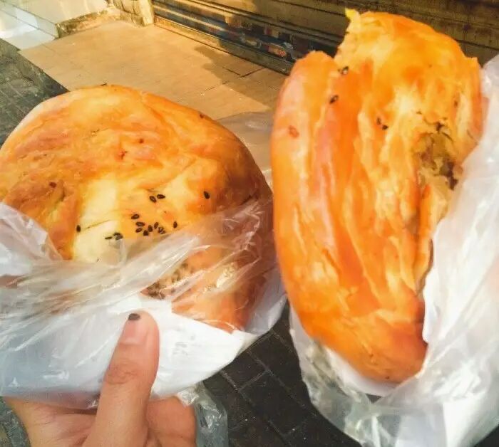 这家烧饼店香味真是勾人,光是闻闻就要流口水~~瘦瘦赶紧买了一个,价格是也是非常亲民。