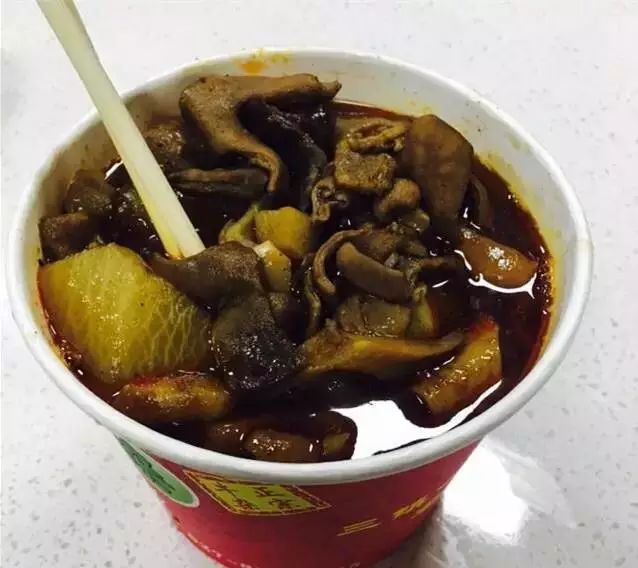 看着小小的一碗,里面可是什么都有,牛杂配以萝卜,萝卜鲜嫩,牛筋劲道!再来一勺卤水,更有味!
