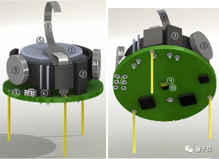 主要部件:1、3.7伏电池 2、电源跳线 3、振动电机 4、三色LED 5、环境光传感器 6、串行输出接头 7、直接编程接口 8、充电标签 9、红外发射器 10、红外接收器