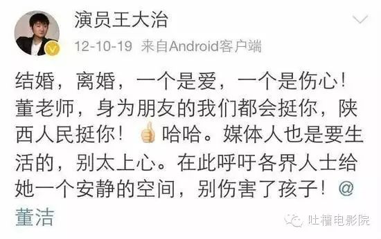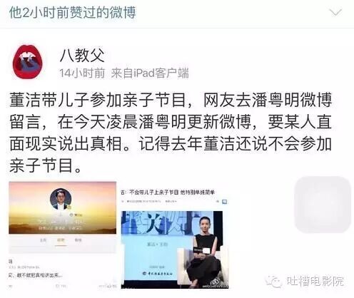 他还赞了一条营销号说董洁的微博: