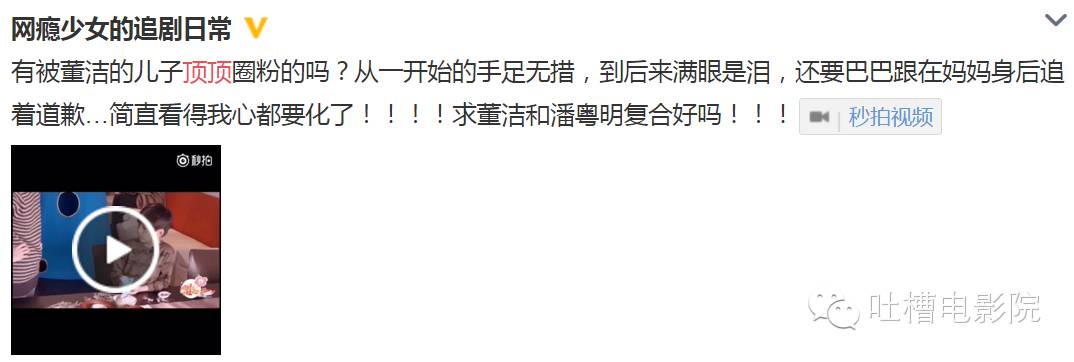 如今董洁带顶顶一上节目,就又有劝她和潘粤明的复合党了。