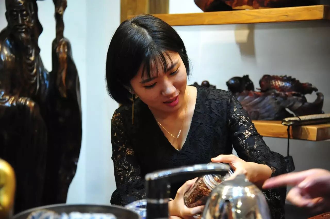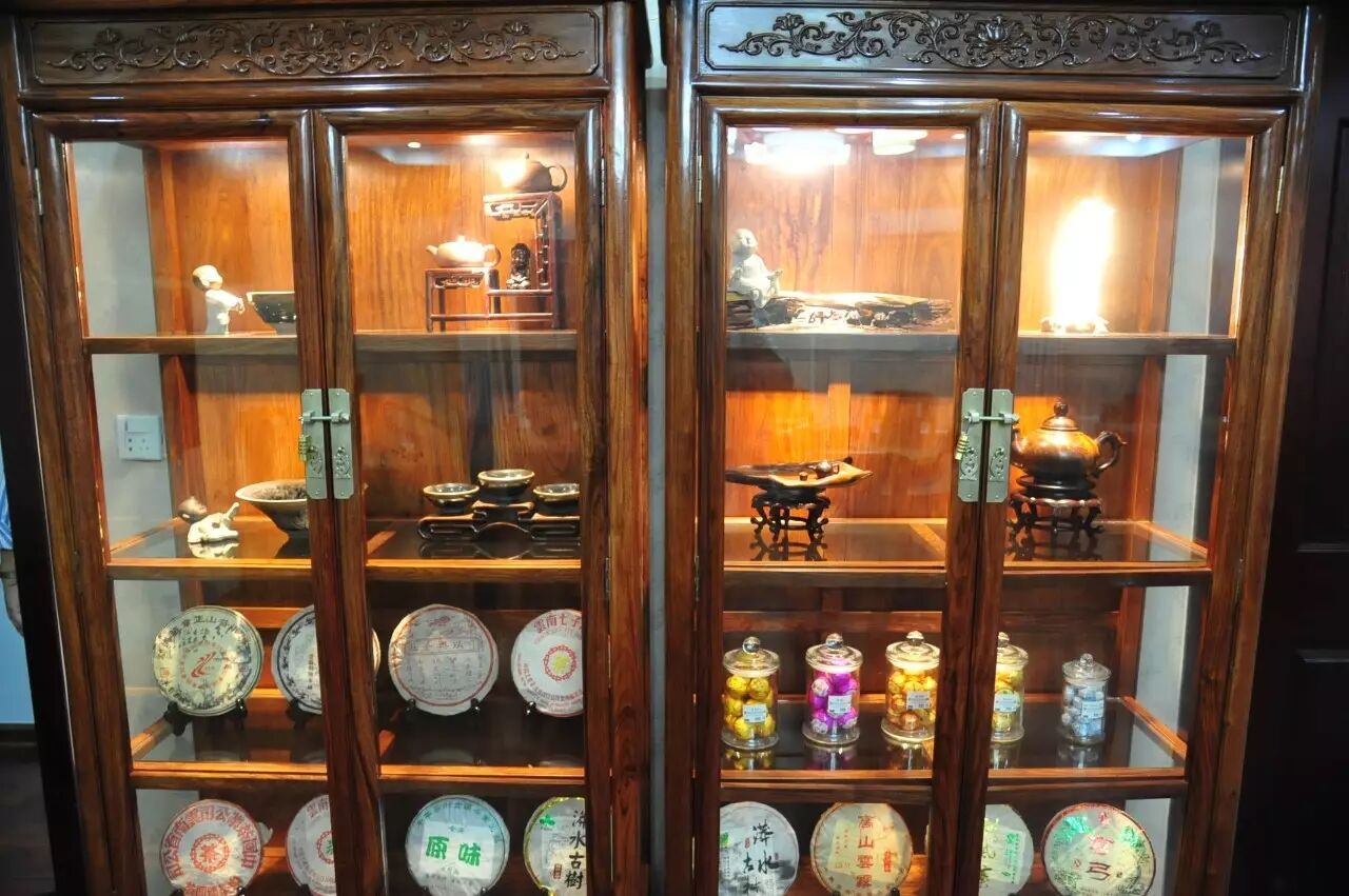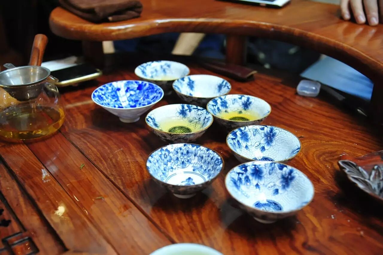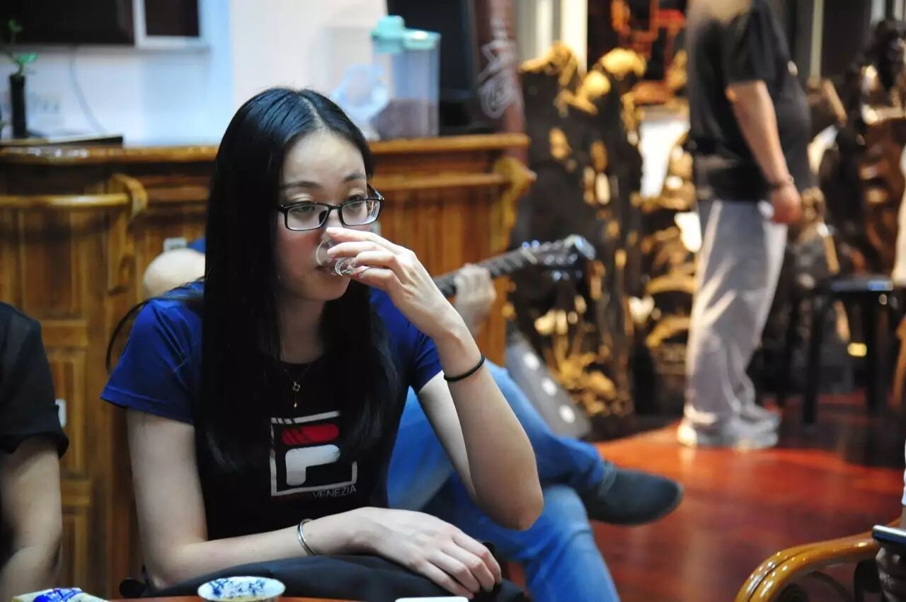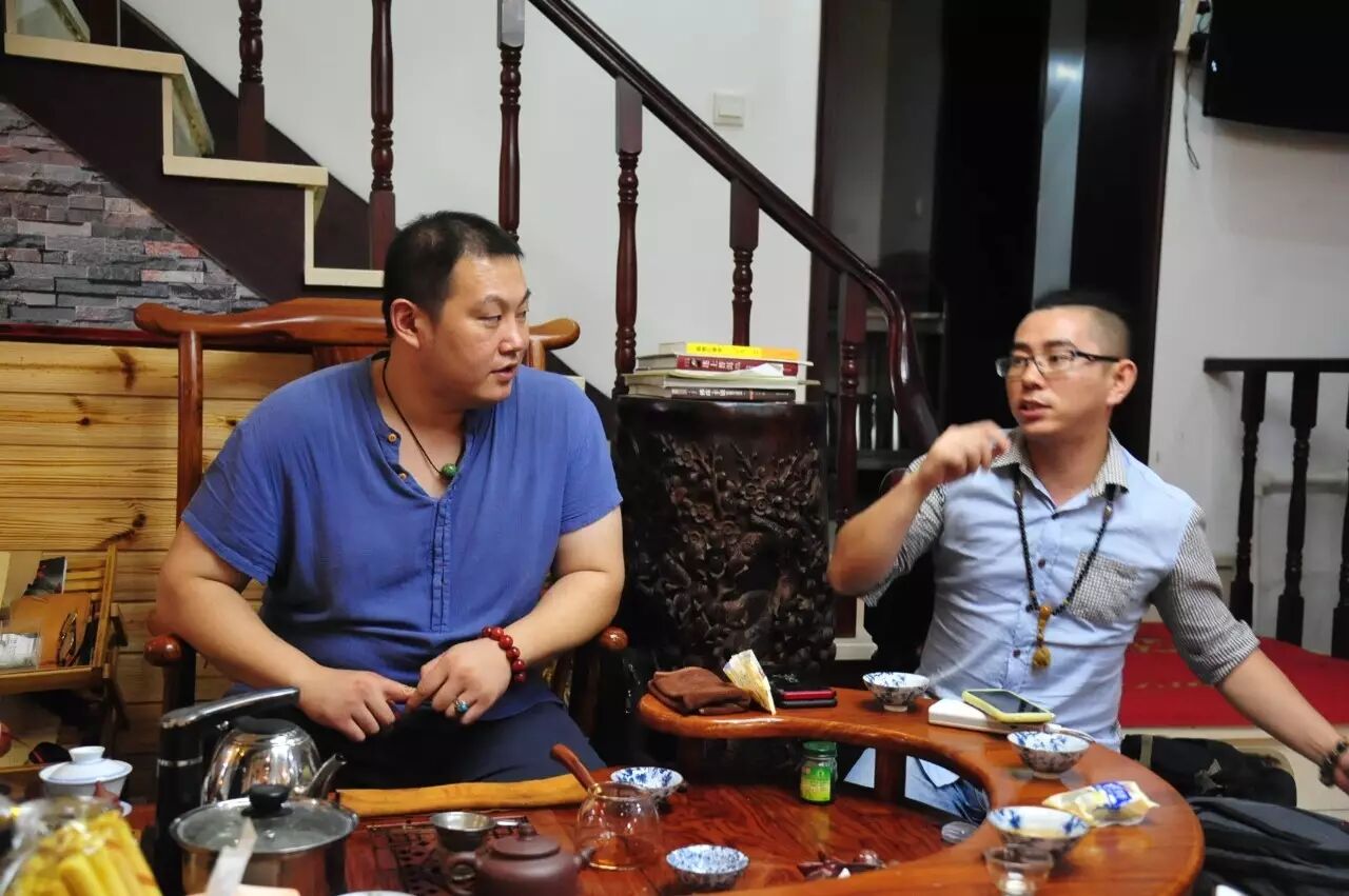 整场茶会,主人拿出来两款茶,虽然是两款茶,不用七碗一样喝到深夜,一样的醉人。一款是2014年漭水古树茶,一款是90年代的7542(又名88青,90前后的88青大拍卖公司的拍卖价一饼357g的数万元)。水遇茶香,好茶自然有爱茶人结缘。2014年漭水古树是西双版纳产区的,却透着易武的柔美,水路细腻,不愠不火。10泡后,熙秀苑王总投入最有降压作用的海南黄花梨,茶汤更浓入口更顺。90年代的7542是经过了云南、广东的洗礼,岁月的积淀,已经把这份茶内在的内含物展现出来,两桌两壶,好客的主人让大家切实感受到如坐春风的热情。