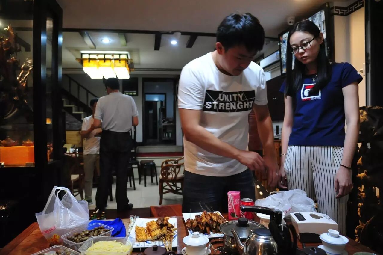 茶亦醉人也需酒,书能香我更需花,茶会结束是酒会,感谢一清茶馆吕鑫为大家奉献了精美的宵夜,感谢熙秀苑王总的好酒,感谢优月堂家政公司郭琳亲手炒制的当天早市购买的全活美味小龙虾: