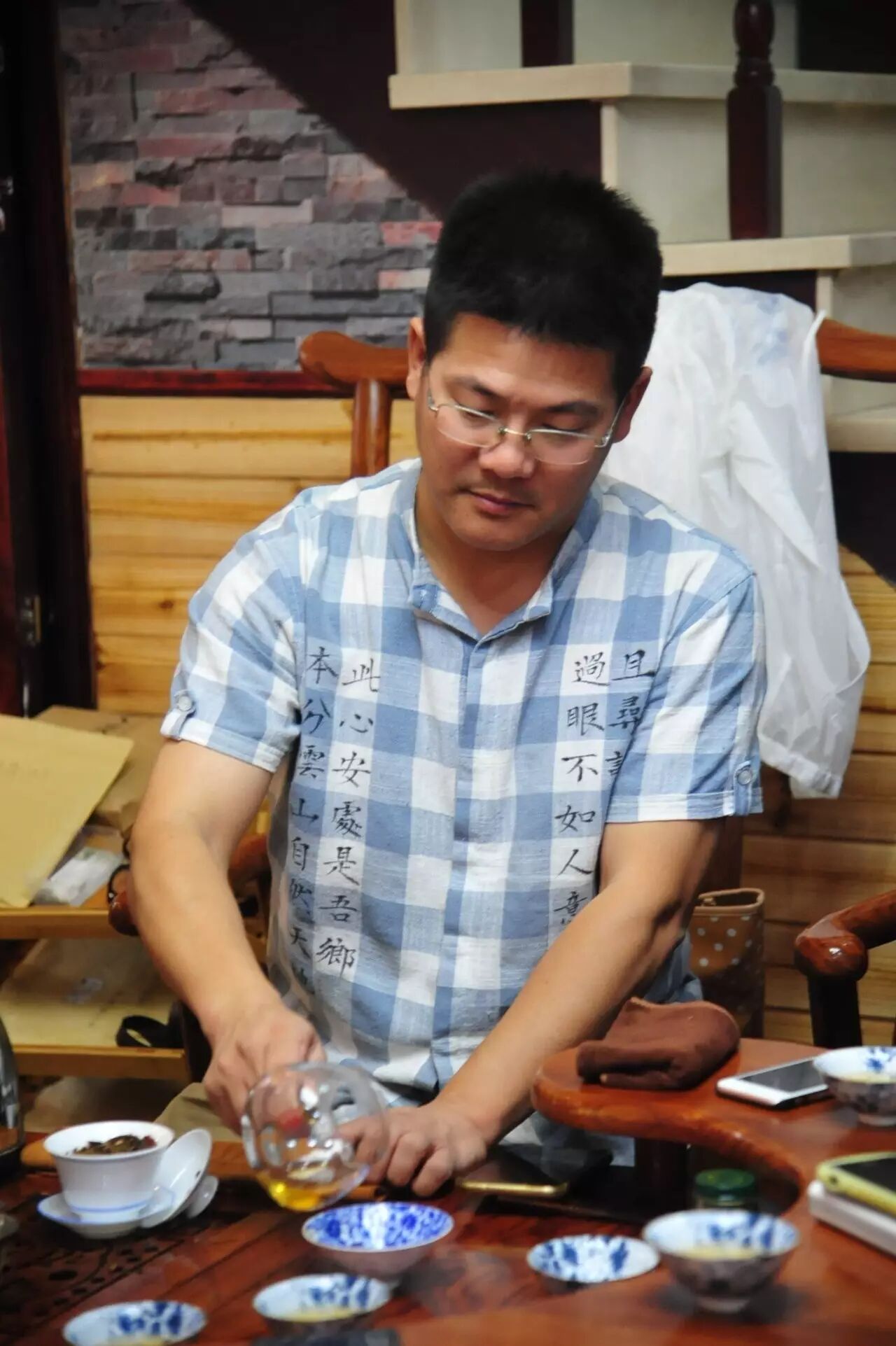洛阳纸贵,青岛茶友会常务副会长兼秘书长把字儿写到了自己的衣服上: