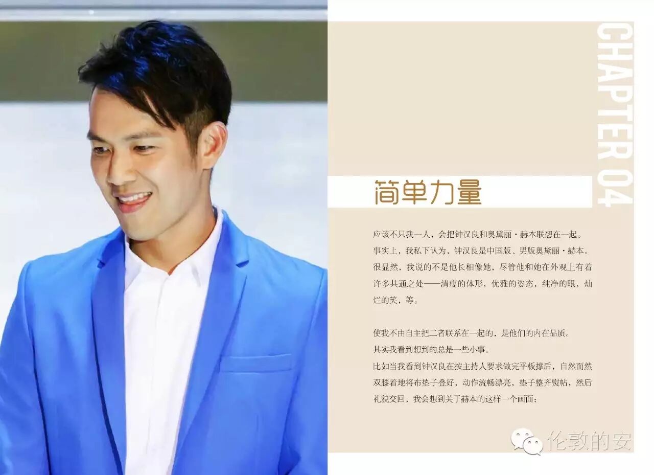 伦敦的安认为,钟汉良是中国版、男版奥黛丽·赫本。他们亲切友好、善解人意。他们都是孩子气的大人,善于将成人的复杂思维简化成孩子的简单智慧,他们内心干净、性灵简单,美而不张扬,俊朗却谦恭,自认很平凡,精神极高贵。