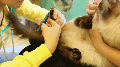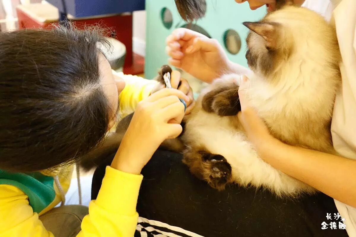 拍照的时候正好碰到有招待小姐姐在帮它们剪指甲,不像有些猫咪会挣扎大叫,反而安安静静的看着自己的爪子。