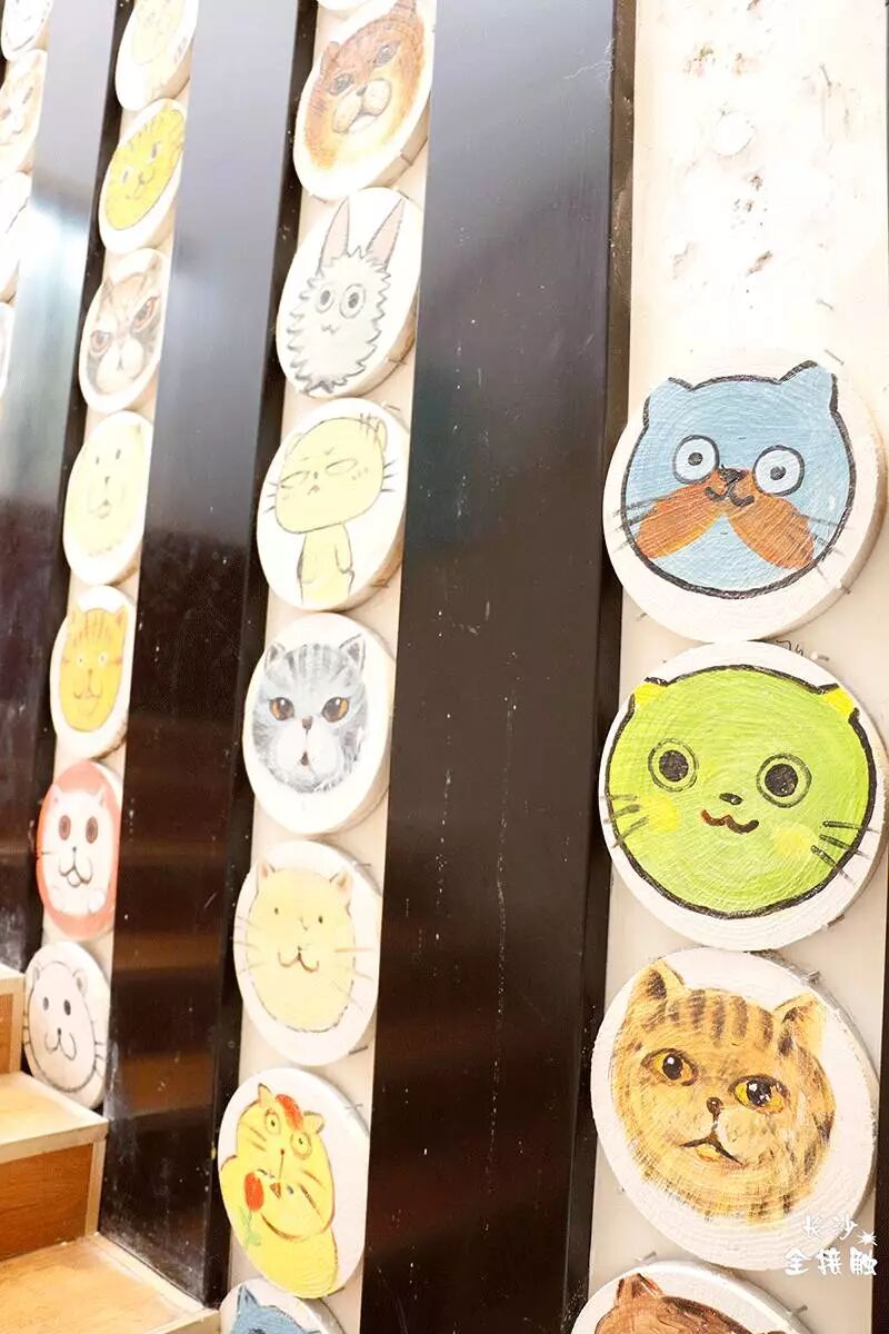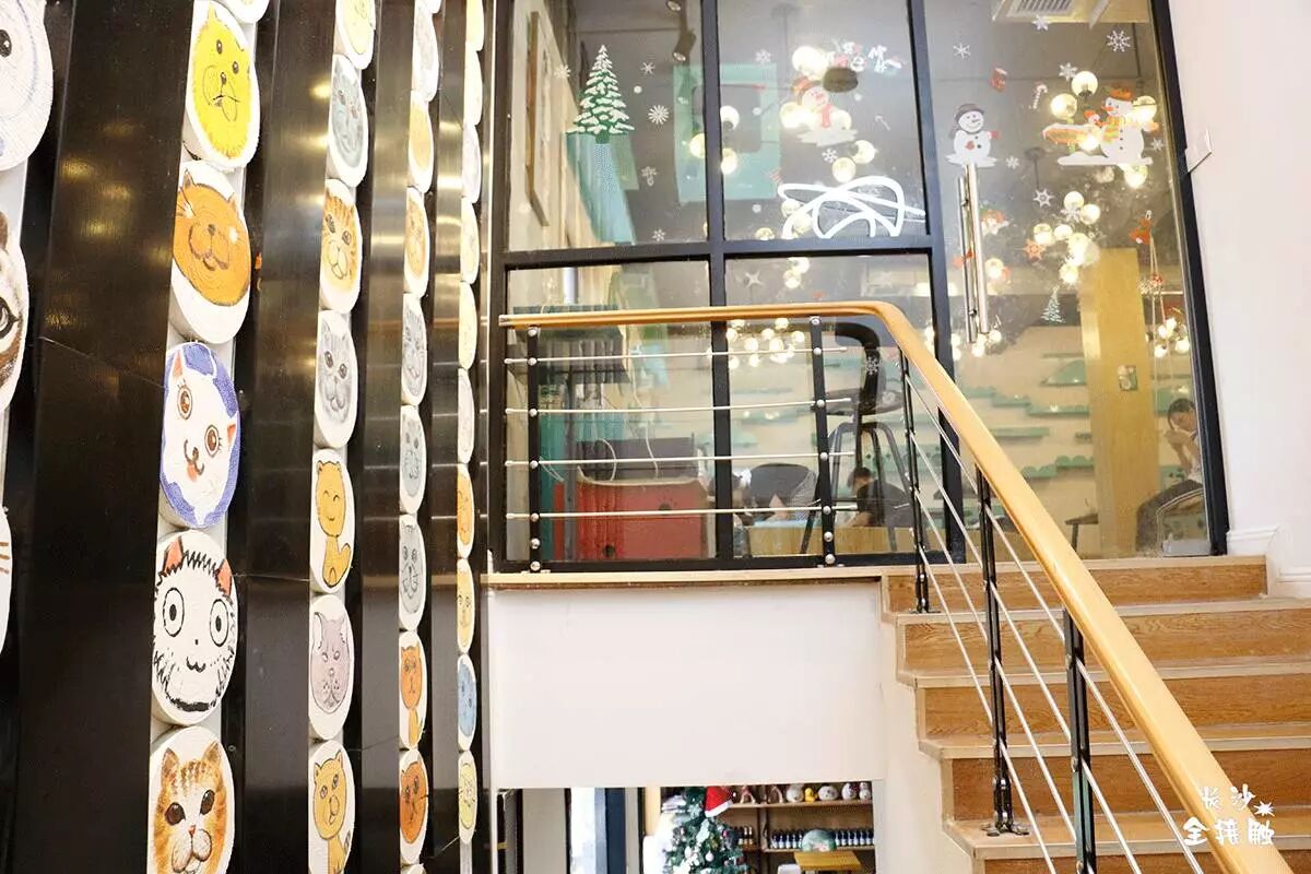 一楼是餐厅,猫咪都在二楼,能看见上楼的走廊都是猫咪的头像,隔着走廊的玻璃就可以看见那些可爱的小家伙,这里要注意~大家上楼记得换鞋子或者套上鞋套~