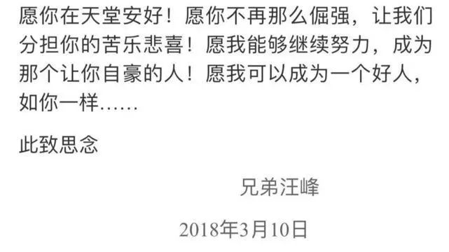 汪峰长文悼念承办其多年演唱会的好友薛利平,回忆14年前想做演唱会却无人问津,最终在对方帮助下举办,从而合作至今。汪峰还透露@稀土部队 对他印象特别好,“子怡第一次见到老薛,他怕子怡闷就陪她聊天直到彩排结束。”章子怡也转发老公长文表达哀思,“你的朋友都在思念你。”