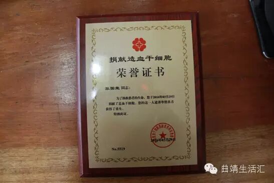 张 国荣不满足于做一名无偿献血者,2008年10月18日初到曲靖市红十字会进行血液采样报名,成为一名造血干细胞捐赠志愿者,到今年3月29日顺利捐赠造 血干细胞,救了一个患者的生命。张国荣说:“这次顺利捐赠造血干细胞,我非常高兴,我把快乐分享给患者,我更快乐。无偿献血是一件最简单而又最伟大的助人 为乐的善事,我会坚持下去!”张国荣希望更多人加入到无偿献血的队伍中。