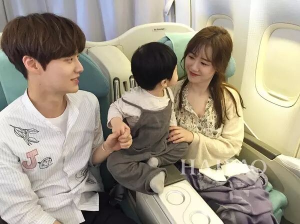 在飞机上碰到了萌baby,一起拍了照片,明明不是他俩的孩子,在一起竟然毫无违和感。具惠善满眼爱心地看着小baby,安宰贤则在一旁温柔地注视着着具惠善。