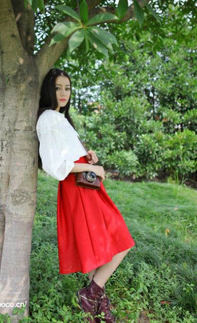趁着夏天还没走,让你的香肩再继续露出来吧。女孩们如果想拥有这份气质的话,不妨选择白色上衣搭配红裙子。
