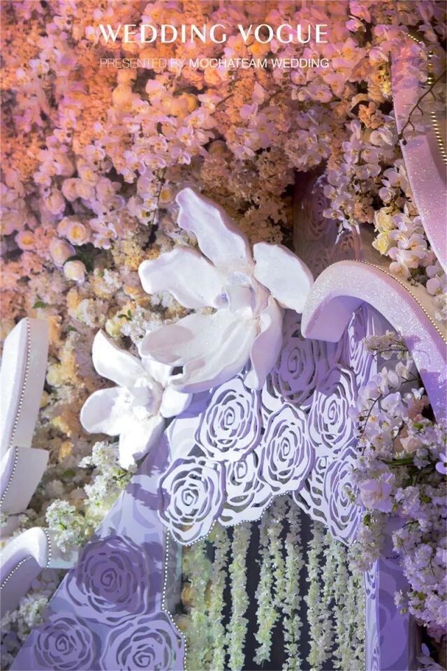 教主和baby的婚礼现场装饰是在展厅做了一个公主的城堡,主要以紫色为主,满满的少女心。