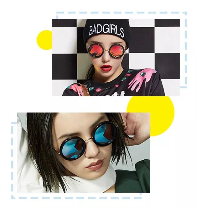 圆形墨镜最大的特点就是镜片是一个正圆形,它有一种与生俱来的复古气质,但又能恰到好处地彰显个性。