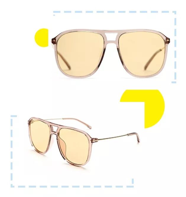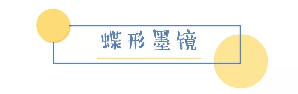 这种墨镜的上半部分比较方正,下半部分则是偏圆,镜框微微上扬,像蝴蝶的翅膀又没有猫眼墨镜那么明显的上挑。