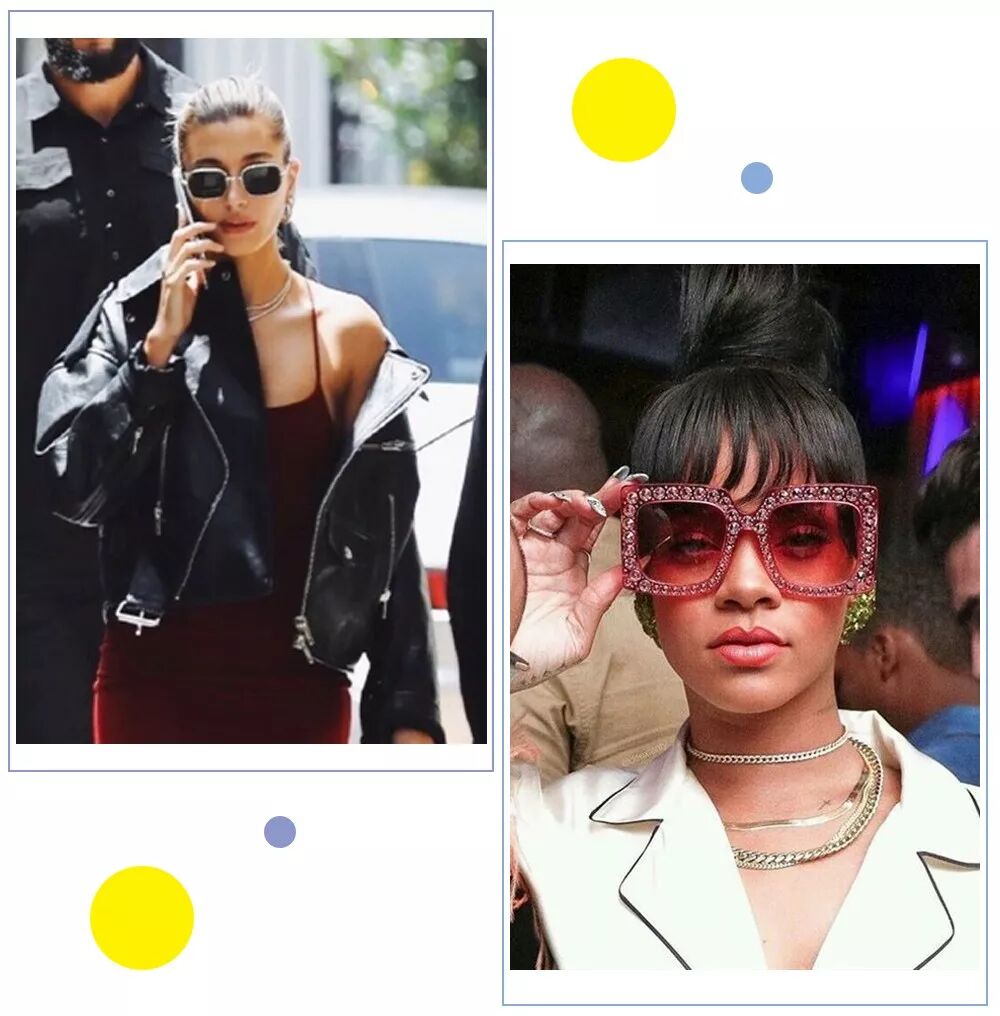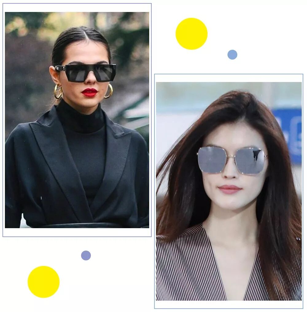 方形墨镜的镜片呈现出有边有角的矩形,这种墨镜有种独特的中性魅力,方方正正的线条能显示出咱女娃刚柔并济的气场。