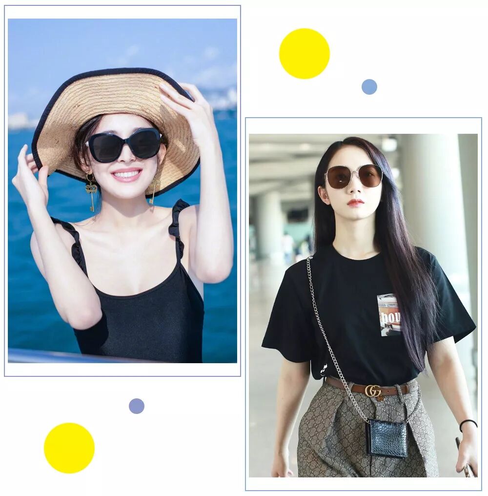 昆凌戴的蝶形墨镜镜片偏大,非常利落潇洒,既日常又显得很有品味。而且把眼部皮肤遮的严严实实的,出海游玩防晒效果一级棒。