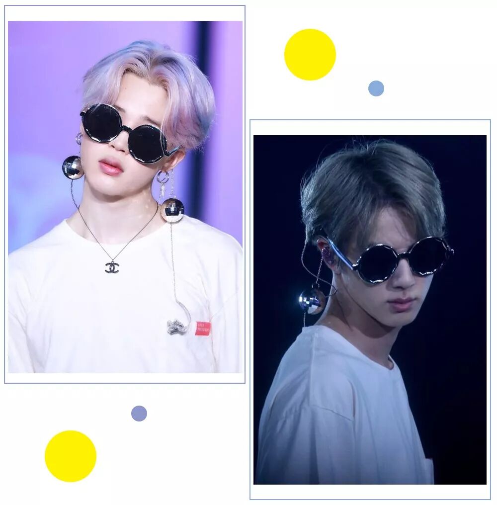 宋茜白色镜框紫色圆形墨镜就更鲜艳了,墨镜打破常规的配色更有一种青春活泼的少女感。镜片和衣服颜色呼应,整体穿搭亮点不断,很有心思~