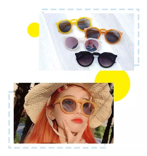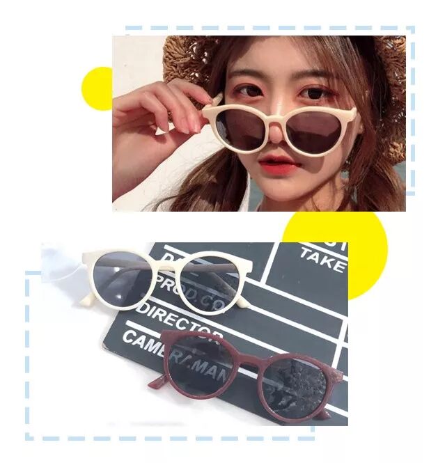 圆脸宝宝们选择圆形墨镜可就要谨慎了,对比一下,傻脸肉嘟嘟的大圆脸加上两个小圆镜片......俩字:残忍!