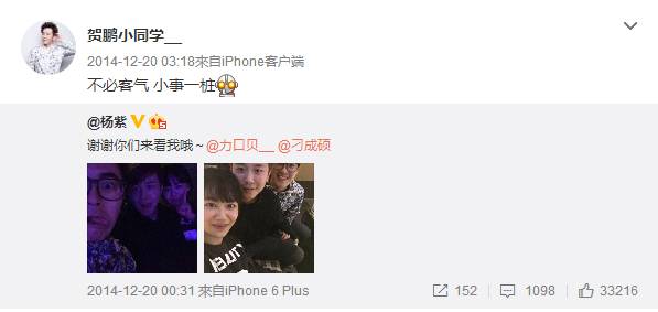 而且早前杨紫曾在微博中晒照朋友探班的照片,片中男子与贺鹏长相极为相似。