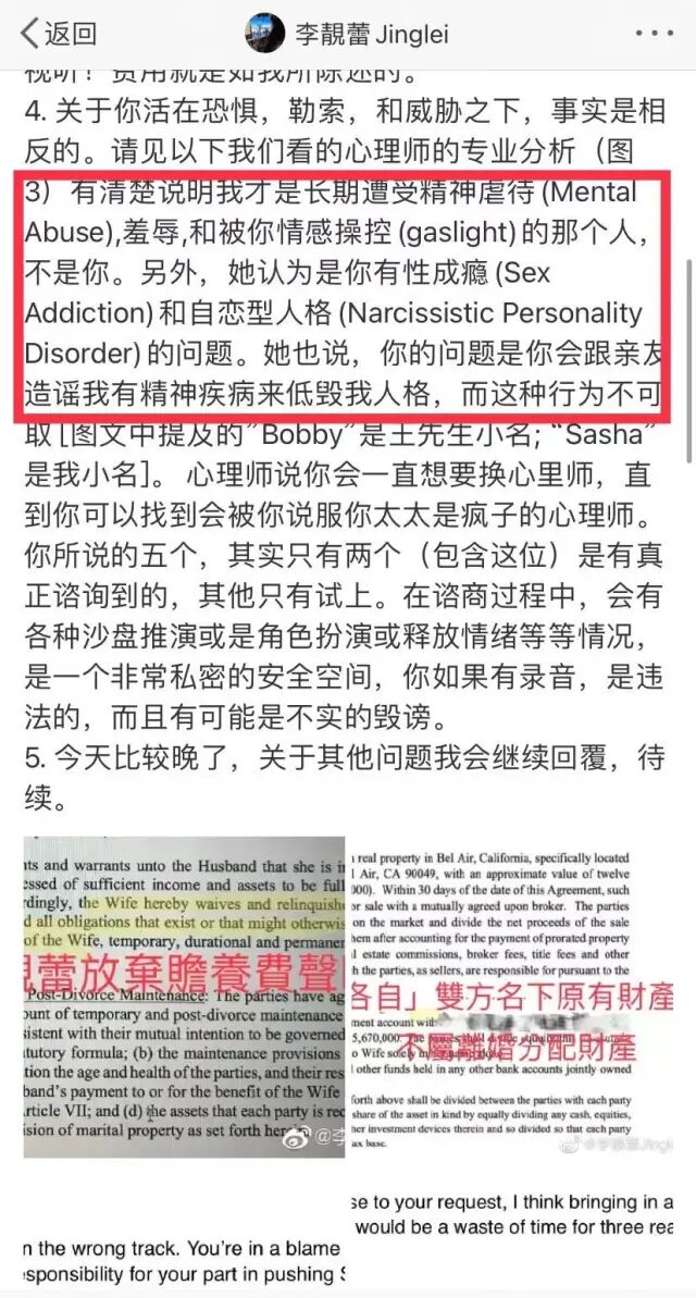 作为回击,李靓蕾则提供了心理师的分析截图。