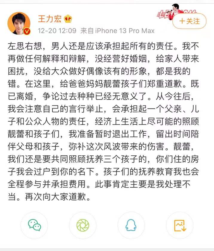 在沉寂了2天之后,12月19日深夜,王力宏本人终于亲自回应了前妻的控诉。