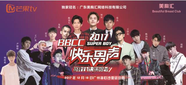 今年《BBCC美胸汇快男巅峰对决演唱会》集结2017年快男十五强新晋,具备极强综合能力男神级别偶像歌手 养鸡、尹毓恪、黄榕生、焦迈奇、王广允、杨梓鑫、赵英博、赵晔、陈玮镔、贾昱 等十余位歌手,还有幸邀请到耀眼夺目的人气王张杰、高颜值实力偶像陈楚生、创作才子王铮亮现场助阵。