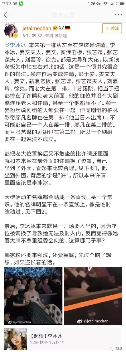 新浪的官方微博在做活动公告的时候,也是把李冰冰放在前面的,所以不可能在安排座位时就弄错了咖位。