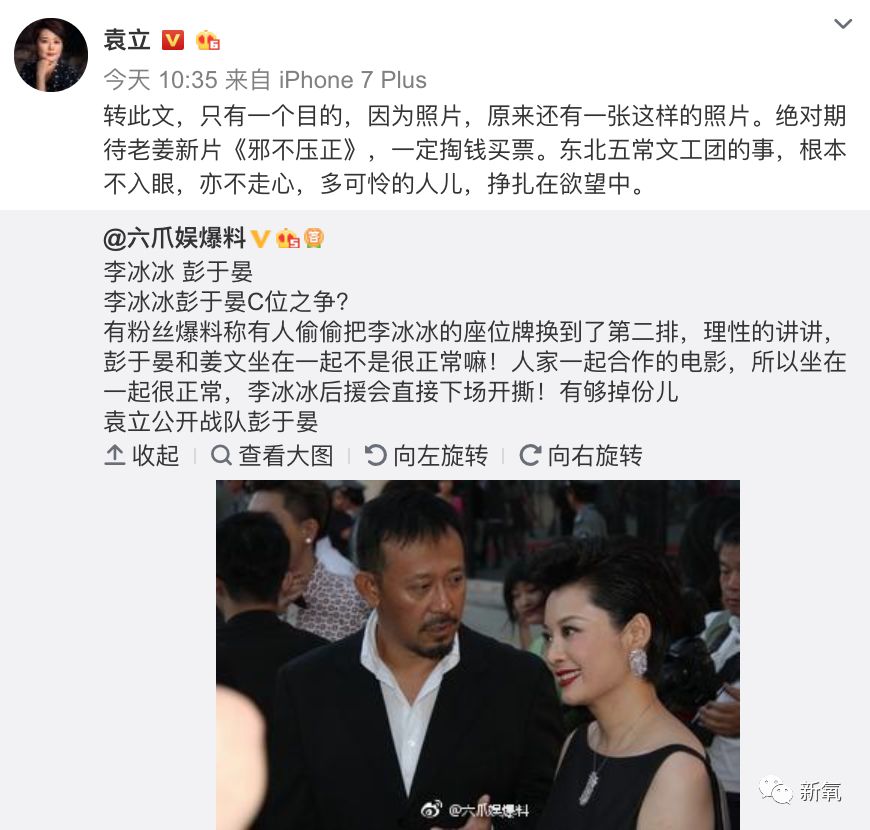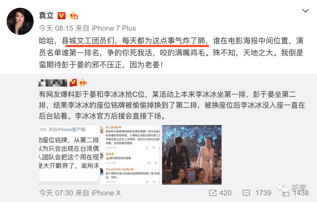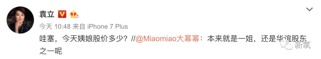 有网友说李冰冰是华谊一姐,袁立就讽刺她是“华姨一姐”...还讽刺华谊的股价大跌...