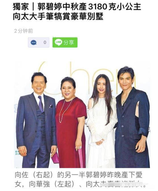 郭碧婷在中秋夜顺利生下一名女婴。并且港媒还透露,喜得孙女的向华强、陈岚夫妇十分高兴,他们送了一栋豪华别墅给郭碧婷作为奖励。