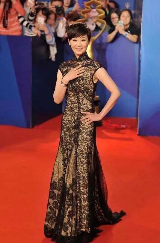 徐帆身穿黑色蕾丝旗袍领礼服裙,许久不见的她终于不再躲藏,尽显窈窕身姿,将成熟女性的魅力散发出来,不要太迷人,改良过的旗袍不仅显气质又散发高贵温婉的女人味,让你无视她的年龄到惊艳时光。