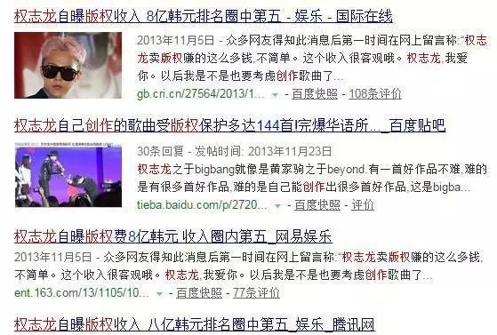 权志龙还曾被评为韩国十大作曲家,记在作曲家协会的合作曲有上百首,成名作《谎言》、大热曲目《Fantastic Baby》、《Bang Bang Bang》、《If You》等都出自权志龙之手。他靠作品的版权费用,每年都有不菲的收入,也被队员调侃为“款爷”。