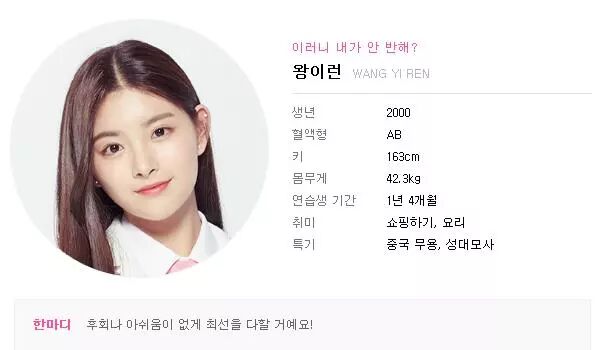 略带生疏却发音可爱的韩语、标准的美人脸,让王怡人的排名一直都比较靠前。