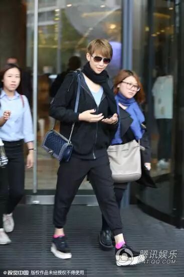 出街Chanel包包和厚底松糕鞋随意干练。