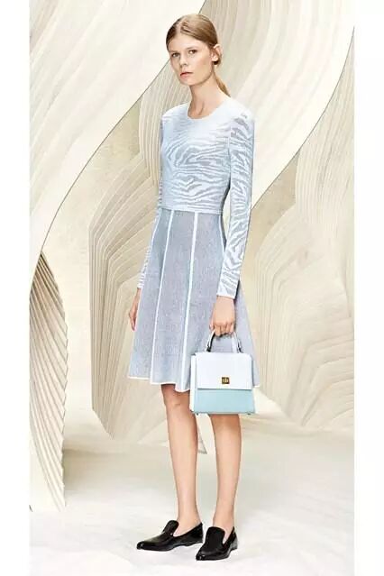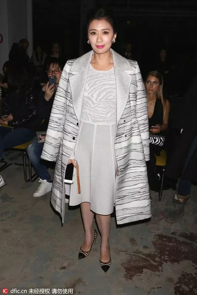 身穿Vivienne Tam 2016早春系列看秀的她,繁复几何稍稍修饰了下小腹的肉肉,光是坐着就辣么美艳动人~