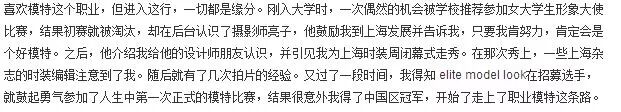 孙菲菲是山东潍坊人,毕业于苏州大学服装设计与展示专业。大学期间,她认识了自己的“伯乐”亮子,亮子鼓励她去上海发展,介绍设计师朋友给她认识,带她进入了模特的大门。