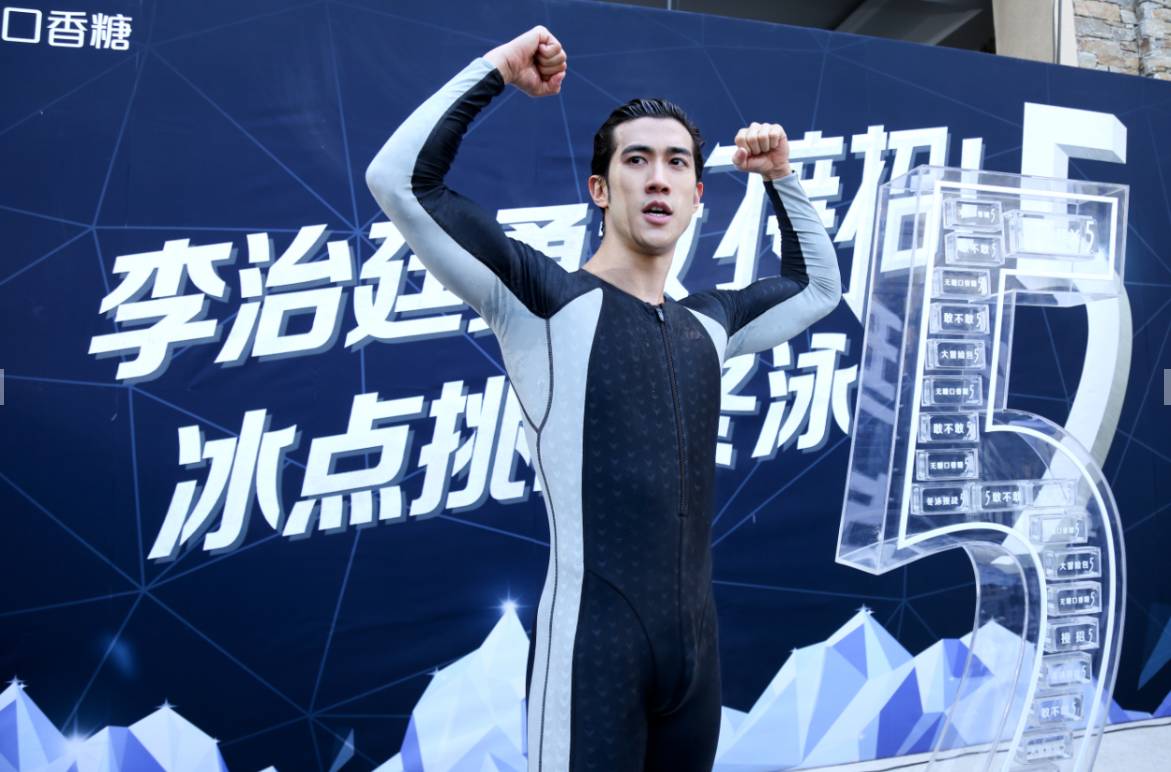 冬泳挑战进行-李治廷下水,全场为李治廷加油打气
